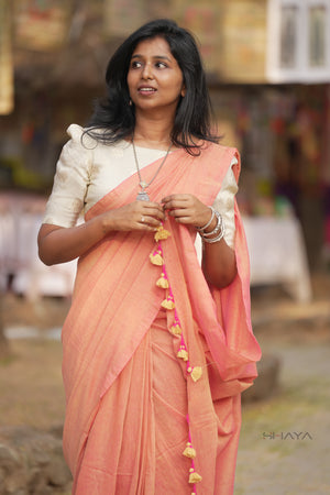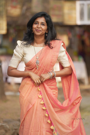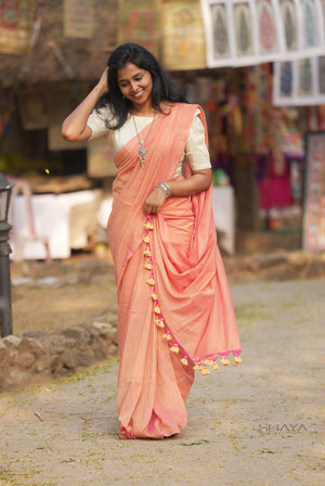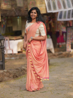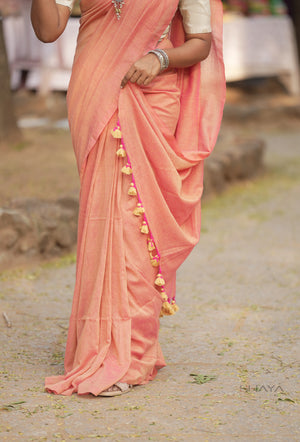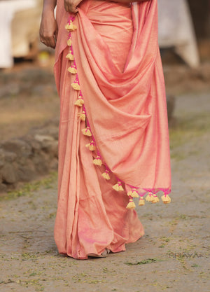 Pastel Peach Mul Cotton Saree with Tassel Pallu