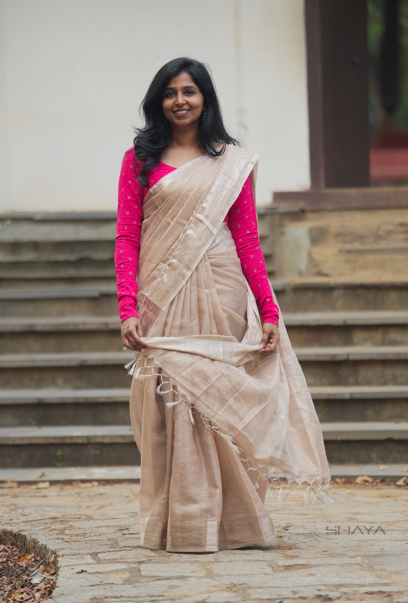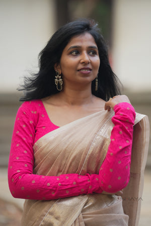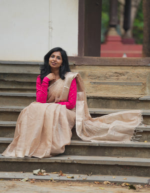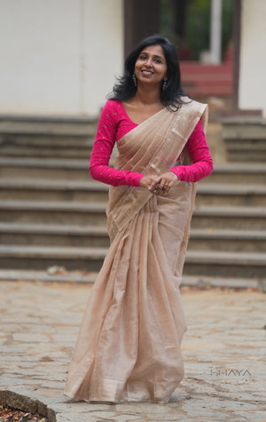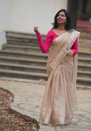 ✨ Ivory Beige Handloom Cotton Silk Saree with Tassel Border